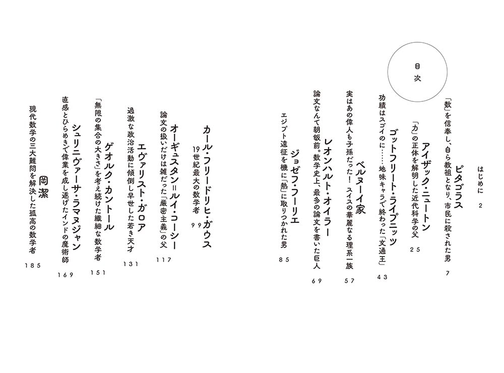 本書はド文系のライターが書いた、「数学にくわしくない大人」や「数学に興味をもちはじめた中高生」でも気軽に楽しめる数学史の本です。クセの強めな数学者たち15人の人生と、その功績をコンパクトにまとめました。
