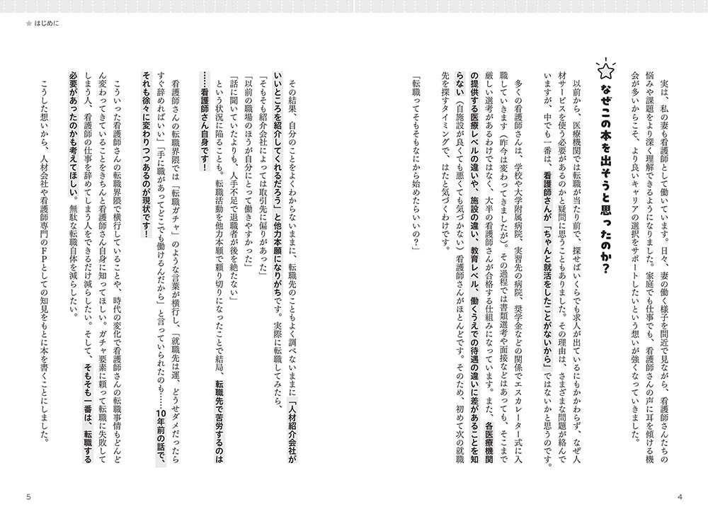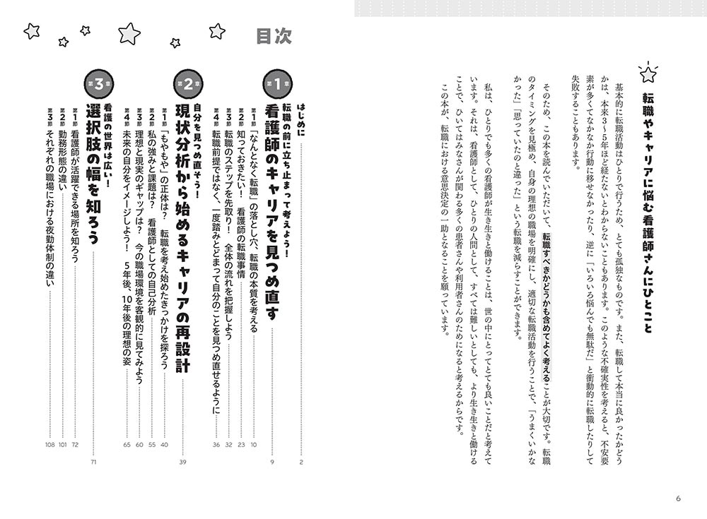 イラストやマンガを豊富に用い、看護師さんの転職に関する考え方を一から解説をしています。
