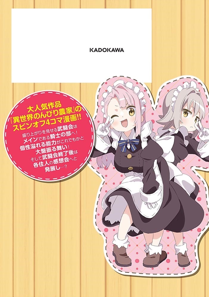 大人気作品『異世界のんびり農家』のスピンオフ4コマ漫画!!盛り上がりを見せる武闘会はメインである騎士の部へ!個性溢れる能力がこれでもかと大盤振る舞い!そして大会終了後は各住人の感想会へと発展し…?