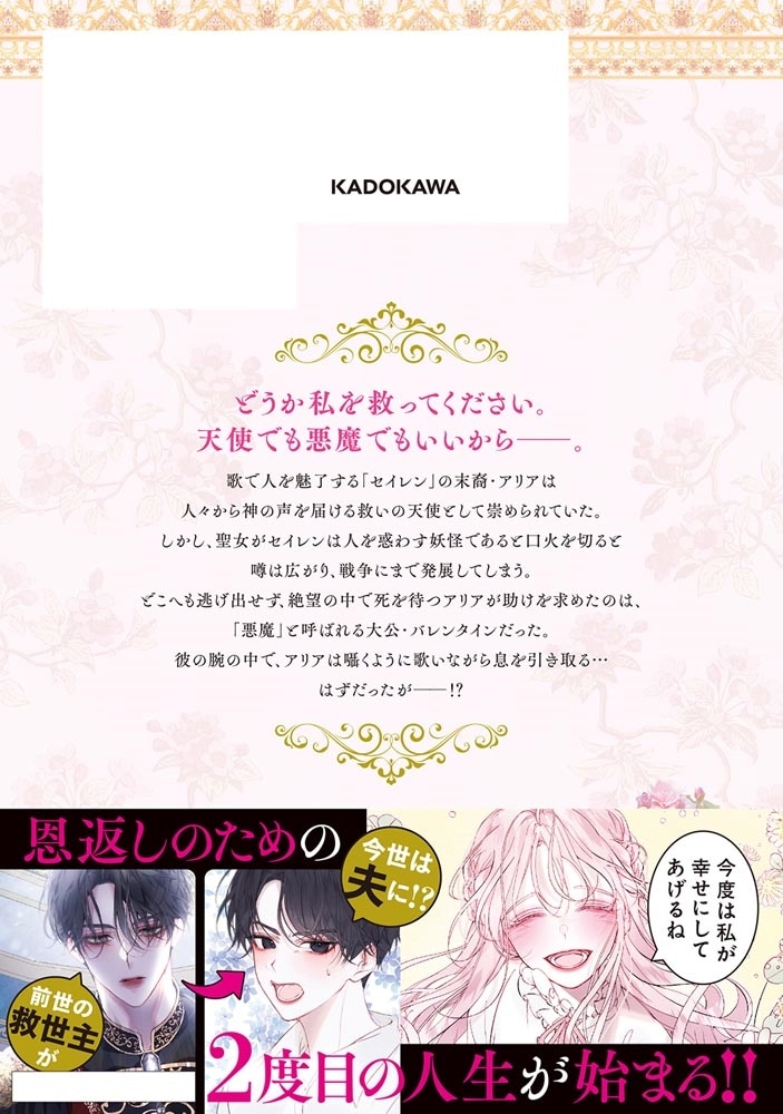 歌で人を魅了する「セイレン」の末裔・アリアは人々から神の声を届ける救いの天使として崇められていた。しかし、聖女がセイレンは人を惑わす妖怪であると口火を切ると噂は広がり、戦争にまで発展してしまう。どこへも逃げ出せず、絶望の中で死を待つアリアが助けを求めたのは、「悪魔」と呼ばれる大公・バレンタインだった。彼の腕の中で、アリアは囁くように歌いながら息を引き取る…はずだったが──!?