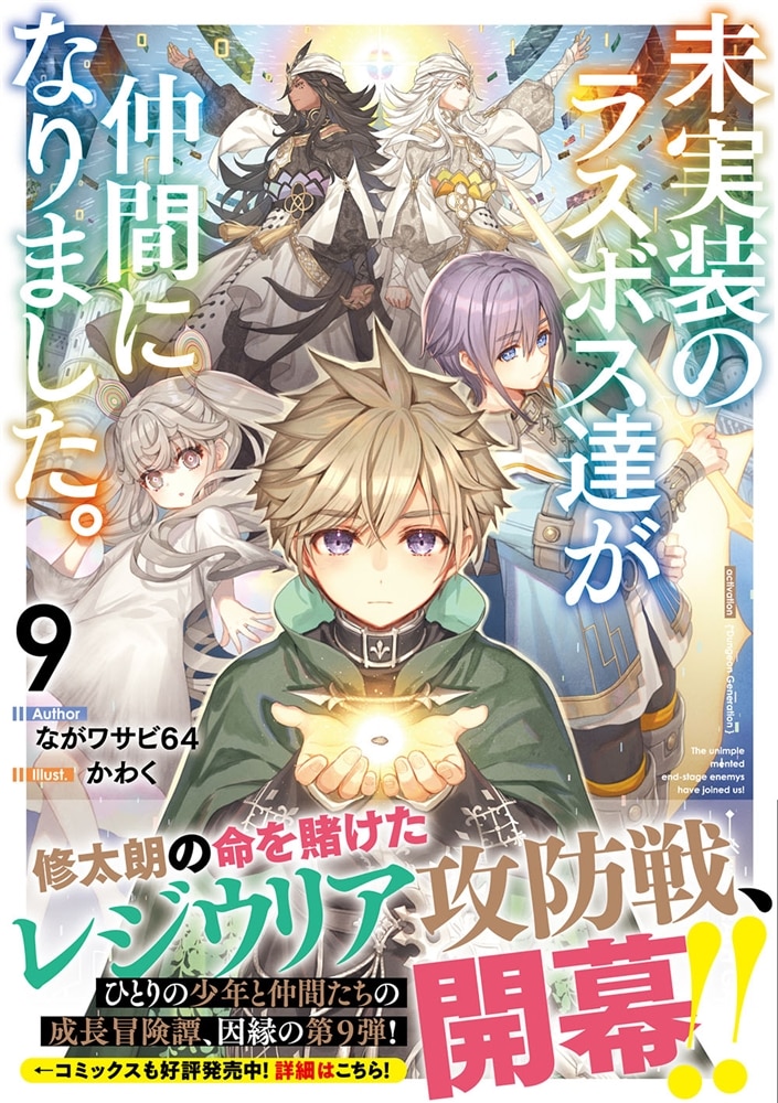 それぞれの過去を乗り越えた魔王たちは再び使徒との戦いに挑むこととなった。一方、レジウリアでは、ダンジョンコアを巡って天使たちとの戦いが幕を開けた。ダンジョンコアを破壊し、修太朗の命をも狙う天使の群れに応戦するのは、レジウリアに住むモンスターと避難してきたプレイヤーの混合軍。彼らは付け焼刃ながらも連携をとり、天使たちに応戦していく。そんな中、修太朗の前に現れたのは、使徒のリーダーであり、光の神の手によって生み出された人間――α。一度は敗走するしかなかったαを前に、修太朗も戦いの決意をしていたが、αはレジウリアに興味を示し、修太朗とも対話を試みてきた。αの迷いを知った修太朗も戦い以外の道がないかを探り始めるが――デスゲーム世界に囚われた、ひとりの少年と仲間たちの成長冒険譚、因縁の第9弾!