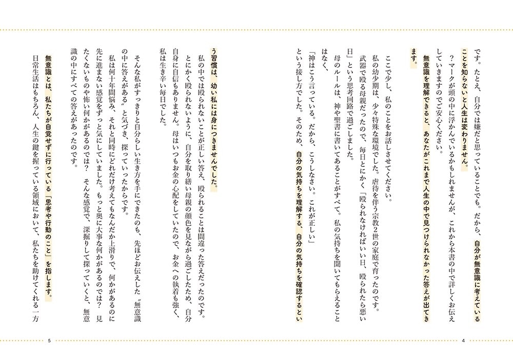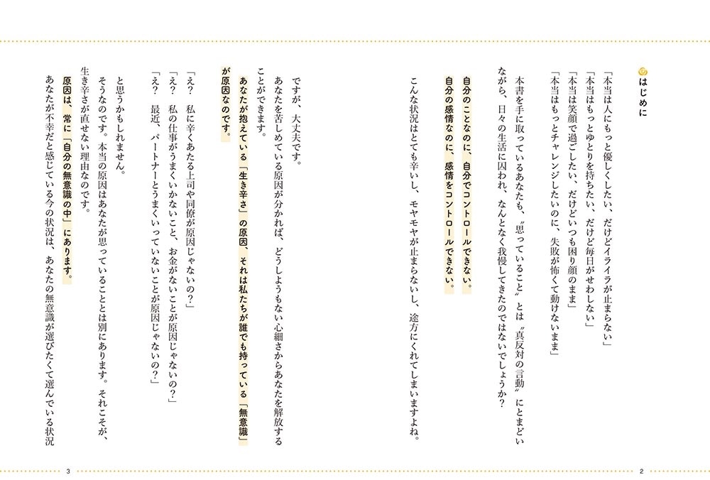 悩みは、実は「無意識に見たくないもの」から目をそらすための隠れ蓑。本当に見たくない「真の悩み、感情」があることに気づくと、思考のゆがみは劇的に改善します。この本では、どうしてそんな思考のゆがみが生まれるのか、そして思考のゆがみはどうやって解消していくといいのか、どうしたら自分を好きになれるのかなど解説します。