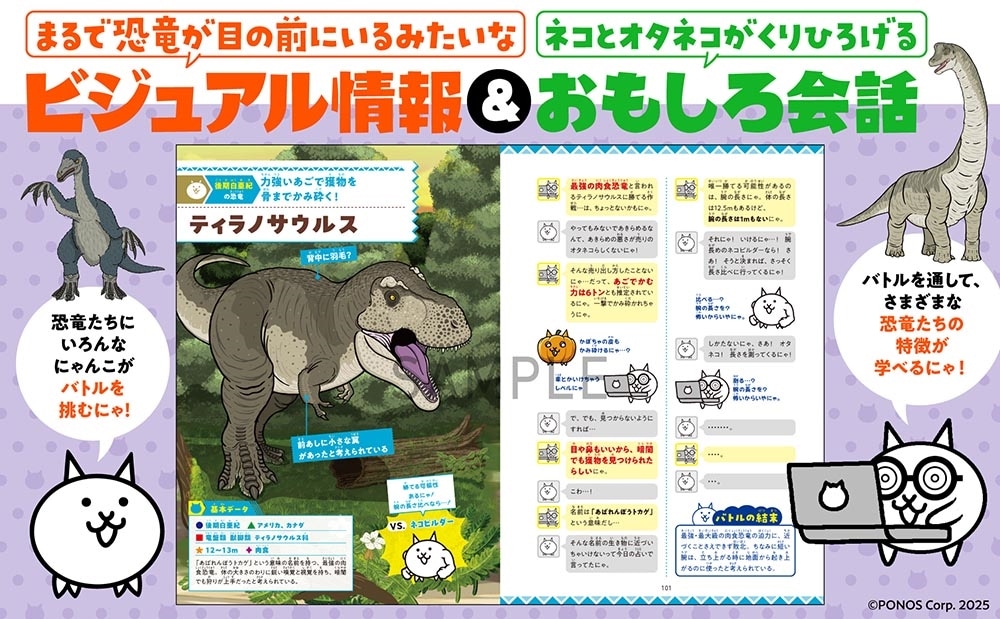 ネコとオタネコがくり広げるおもしろ会話で、にゃんこと恐竜たちとの大バトルが展開!