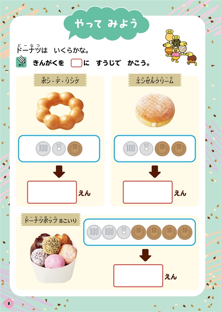 「お金の使い方」「計算」「お買い物」が学べるドリルです☆