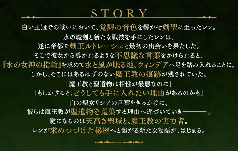 白の聖女リシアの言葉をきっかけに、彼らは魔王教が聖遺物を蒐集する理由へ近づいていき――――。