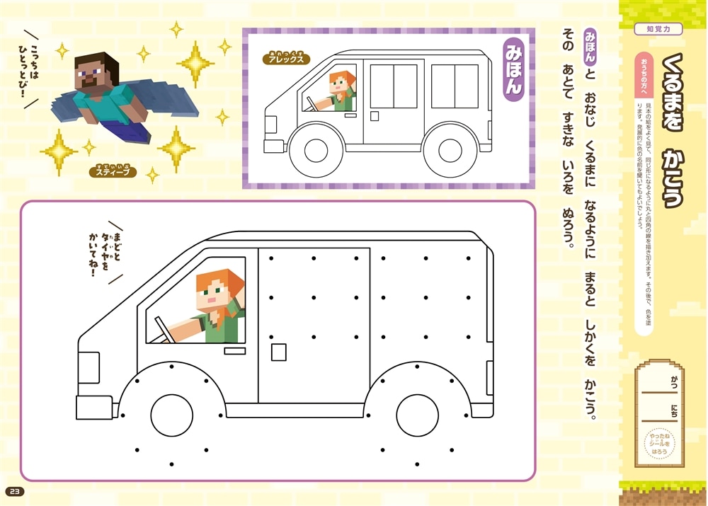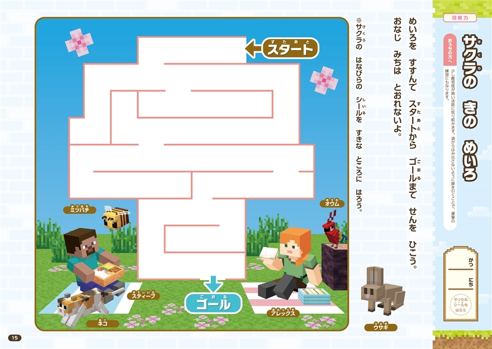このドリルでは、マイクラ好きのお子さまが楽しくドリルに取り組みながら、洞察力や理解力、分類力など、さまざまな知的能力をバランスよく養うことができます。