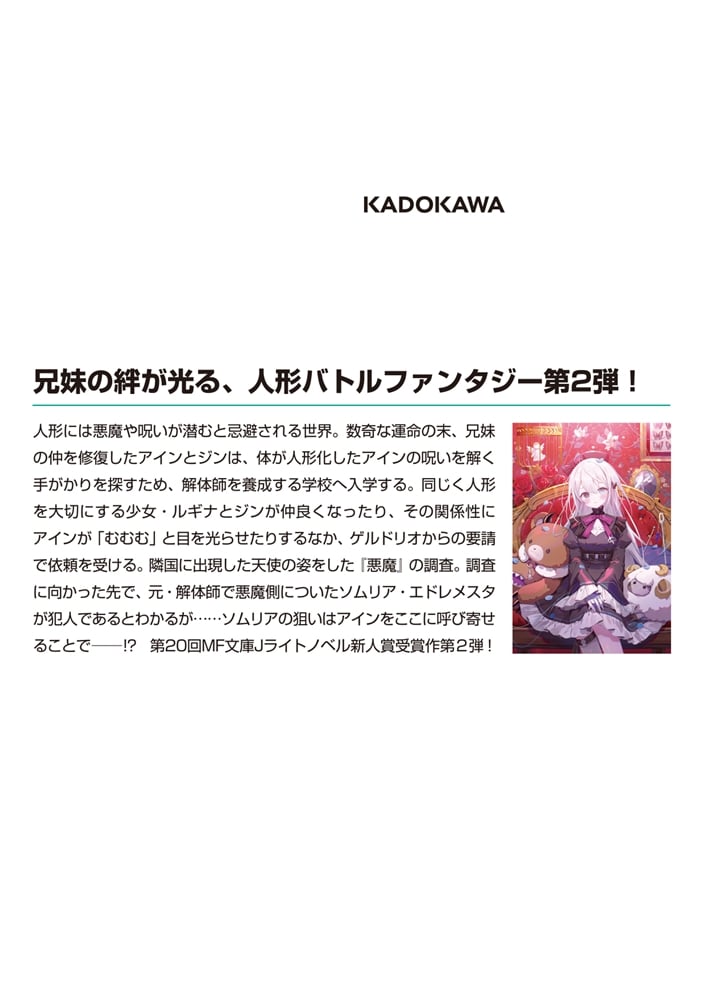 同じく人形を大切にする少女・ルギナとジンが仲良くなったり、その関係性にアインが「むむむ」と目を光らせたりするなか、ゲルドリオからの要請で依頼を受ける。隣国に出現した天使の姿をした『悪魔』の調査。調査に向かった先で、元・解体師で悪魔側についたソムリア・エドレメスタが犯人であるとわかるが……ソムリアの狙いはアインをここに呼び寄せることで──!?