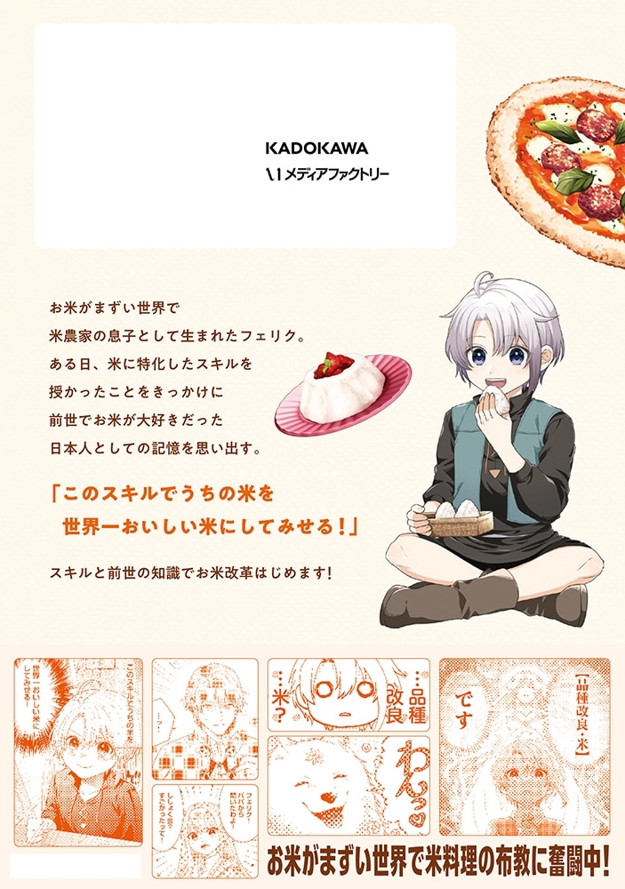 米がまずい世界で米農家に生まれたフェリクは、八歳の誕生日にスキル【品種改良・米】を授けられ、米好きだった前世の記憶も思い出す。