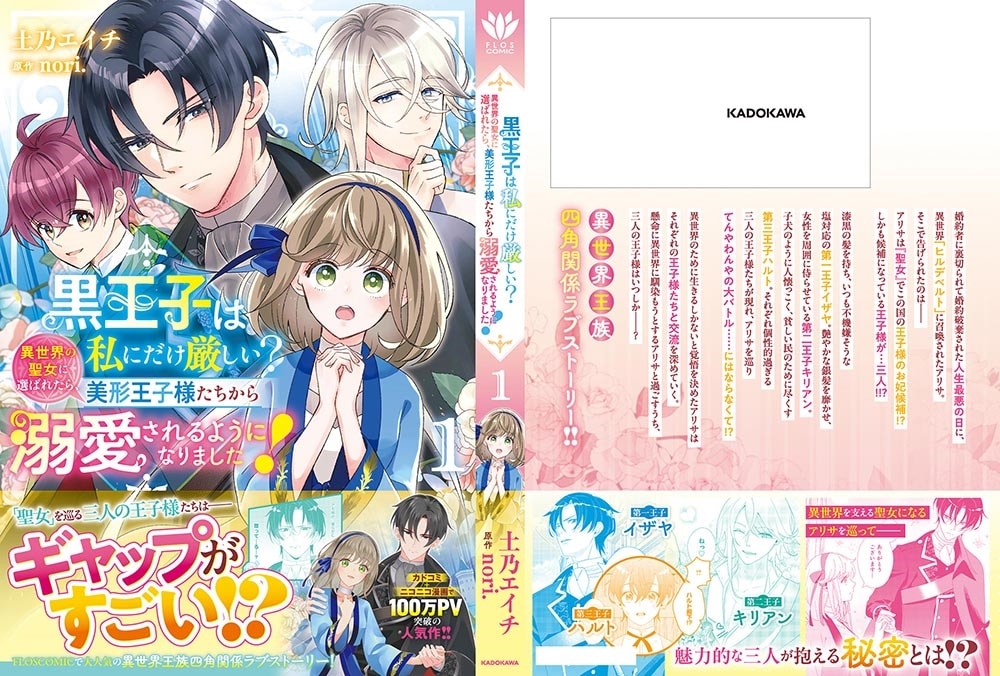 婚約者から裏切られ婚約破棄されたその日に異世界「ヒルデベルト」に召喚されたアリサ。何が何やらわからないアリサは、自分がこの国の要「青の壁」を支える『聖女』であり、この国の王子のお妃候補だと告げられ大パニック! しかも候補となる王子様は三人もいて、そのうちの一人を選ぶようにと言われ――!? アリサを見る目はいつも不機嫌だが、誰より国の行く末を憂う第一王子イザヤ。銀髪で艶やかな交友関係を持つが、実は意外な裏の顔を持つ第二王子キリアン、子犬のように人懐っこく、自らケーキを焼き民に尽くそうとする第三王子ハルト。それぞれ個性的過ぎる王子様たちが、アリサを巡って大バトル……にはならなくて!? 慣れない異世界で誰ともうまくやれないかと思っていたアリサだけれど、三人とそれぞれ交流を深めていくうち、王子様たちに秘められた想いと謎に気付く……。三人とアリサの幸せはどこに!? 異世界、四角関係ラブストーリー開幕!!