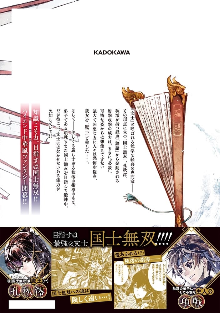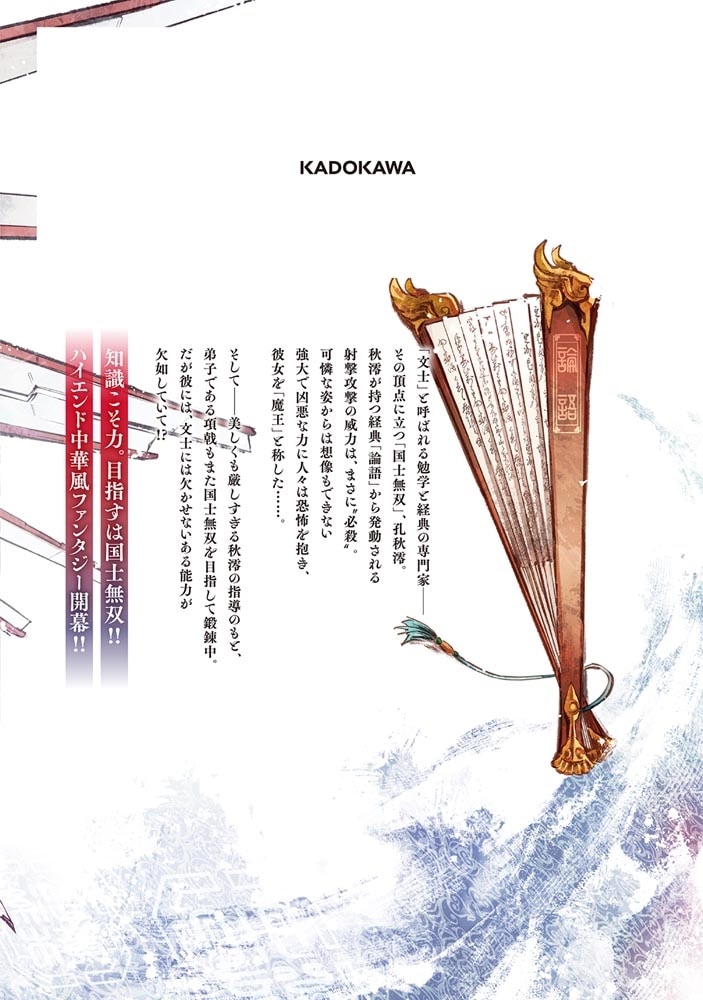 「文士」と呼ばれる勉学と経典の専門家──その頂点に立つ「国士無双」が孔 秋澪(こうしゅうれい)である。