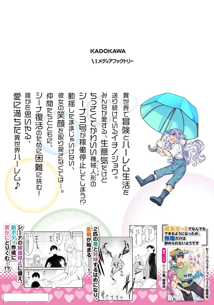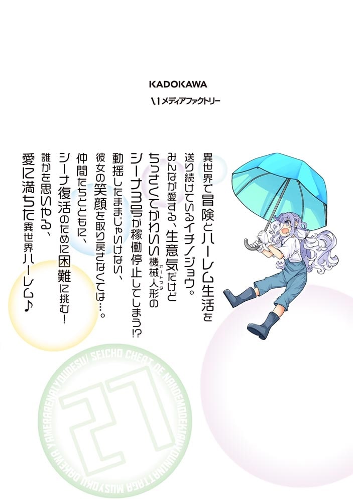 異世界で冒険とハーレム生活を送り続けているイチノジョウ。みんなが愛する、生意気だけどちっさくてかわいい機械人形のシーナ3号が稼働停止してしまう!?