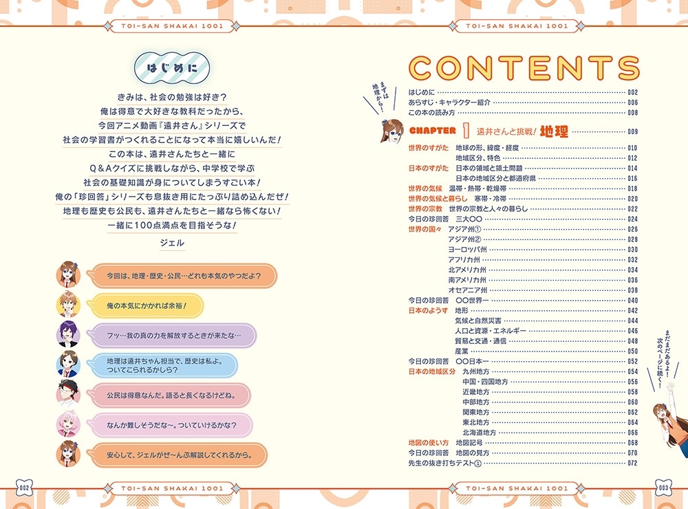 さあ、遠井さんとゆかいな仲間たちと一緒に、笑って学んで、中学社会1001問を完全制覇しよう!