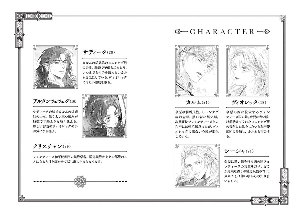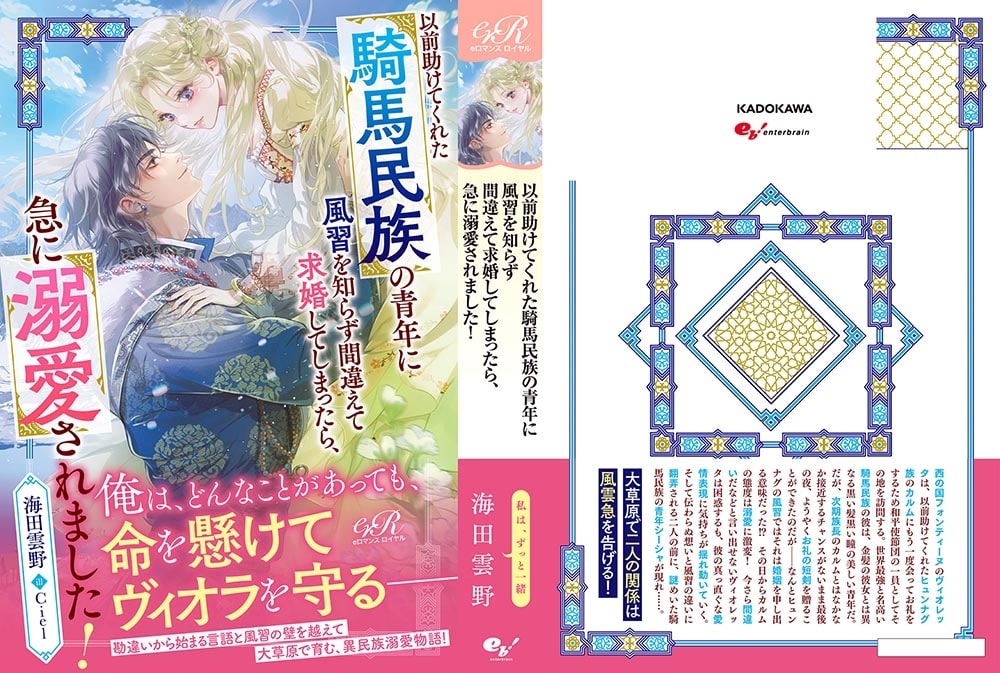 西の国フォンティーヌのヴィオレッタは、以前助けてくれたヒュンナグ族のカルムにもう一度会ってお礼をするため和平使節団の一員としてその地を訪問する。世界最強と名高い騎馬民族の彼は、金髪の彼女とは異なる黒い髪黒い瞳の美しい青年だ。だが、次期族長のカルムとはなかなか接近するチャンスがないまま最後の夜、ようやくお礼の短剣を贈ることができたのだが――なんとヒュンナグの風習ではそれは婚姻を申し出る意味だった!? その日からカルムの態度は溺愛に激変! 今さら間違いだなどと言い出せないヴィオレッタは困惑するも、彼の真っ直ぐな愛情表現に気持ちが揺れ動いていく。そして伝わらぬ想いと風習の違いに翻弄される二人の前に、謎めいた騎馬民族の青年シーシャが現れ……。言語と風習の壁を越え大草原で育む異民族溺愛物語!