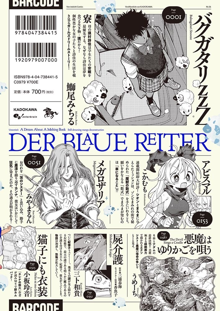 独創的、娯楽的、ハイ・クオリティーな漫画がいっぱい。一度はまったらやみつきになる、エンターブレイン系コミックの新鋭漫画誌、それが青騎士! 創刊5年目、力のある漫画家がそろってきました。今が読み頃! 第26号は連載2回目の鰤尾みちる先生の『バクガタリzzZ』が表紙に登場! また内田春菊先生『性的虐待 わたしの場合』が新連載スタート!! そのほか伸び盛りの連載陣も充実!!!