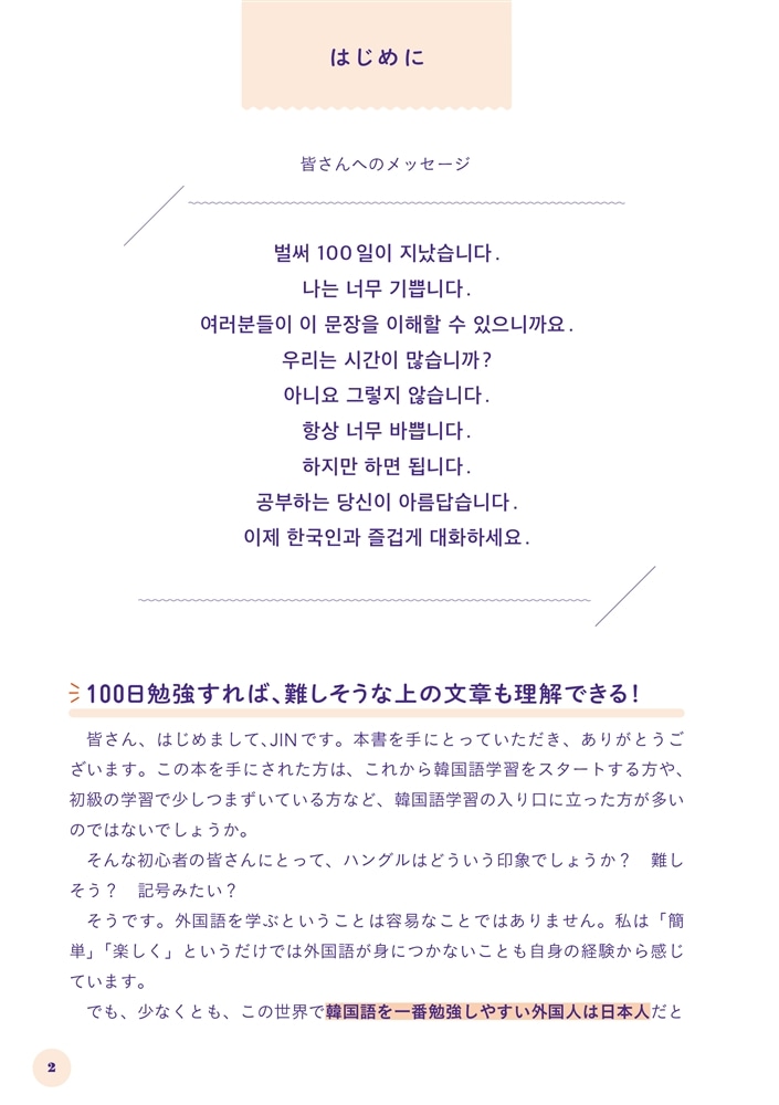 本書は、YouTubeで動画配信をしながら定期的に韓国語セミナーも行うJINによる韓国語の教科書です。