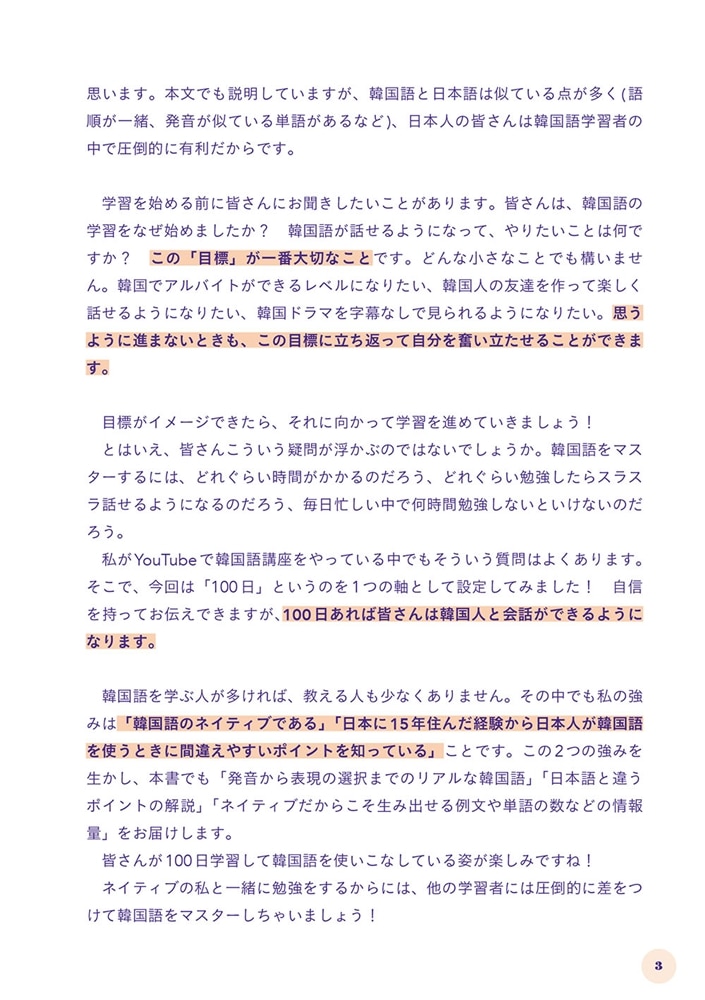 毎日少しずつやれば、100日後、きっと別人になっているはずです。1日5分でいいので習慣化し、韓国語を楽しんで学んでいきましょう!