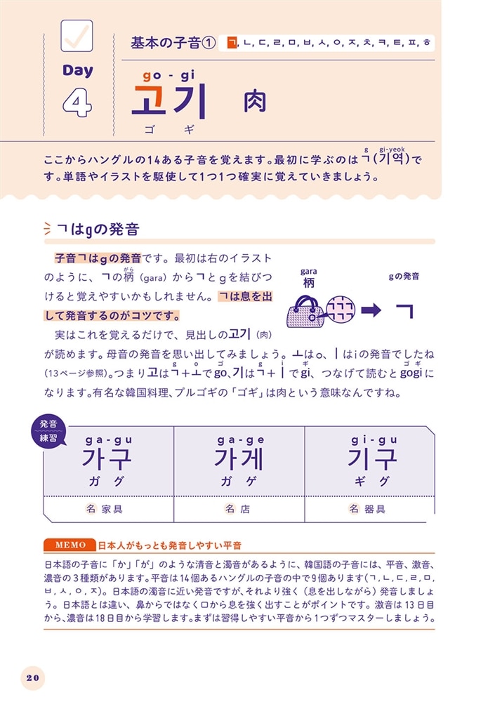 途中で挫折してしまった方のなかには、発音変化や変則活用など、基本と外れるところが難しくて、やめてしまった方もいるかもしれません。不必要なものはなるべくなくし、必要なところを最小限に、ネイティブの感覚を意識して作りました。わからないところは反復練習が必要になってきますので、「がんばって覚えないと!」と気構えすぎずに、楽な気持ちで進めていきましょう。