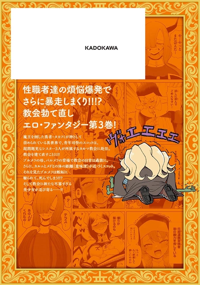 魔王を倒した勇者・タカフミが神として崇められている異世界で、青年司祭のスコットは、超問題児なシスター3人が所属するカルマ教会に赴任。教会を建て直すことに!!