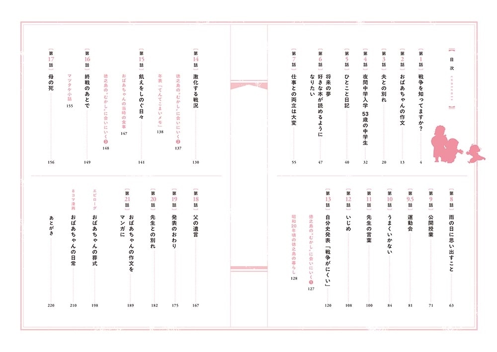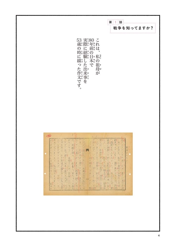 鹿児島県の離島・徳之島で戦争が激しさを増す中、祖母は飢えに苦しみ、家族全員を失います。その深い心の傷は、生涯癒えることはありませんでした。教育を受けることも、文字を学ぶ機会も奪われた祖母は、53歳になって大阪の夜間中学校に入学。先生や仲間たちと出会い、信頼関係を築きながら、ようやく自分の人生を歩み始めます。そんな祖母が綴った一編の作文「戦争がにくい」。そこには、想像を絶するような戦時下の暮らしと、飾らない言葉で綴られた叫びが記されていました。大胆でユニーク、そしてどこか愛おしい――そんな“おばあちゃん”の生きた証を、孫の著者が徳之島での取材とともに辿りながら描く、コミックエッセイ『戦争さえなければ』。戦後80周年を迎える2025年夏、刊行。