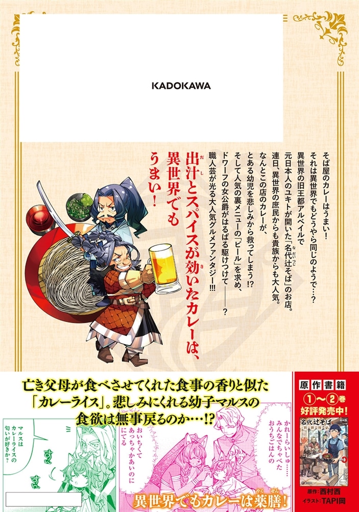 そば屋のカレーって美味ですよね? 異世界のそば屋カレーはなんと、ひとりの幼児を悲しみから救ってしまう!? そして、そば屋での人気裏メニューは「ビール」! この美酒を求め、ドワーフの女傑も駆けつけて…?