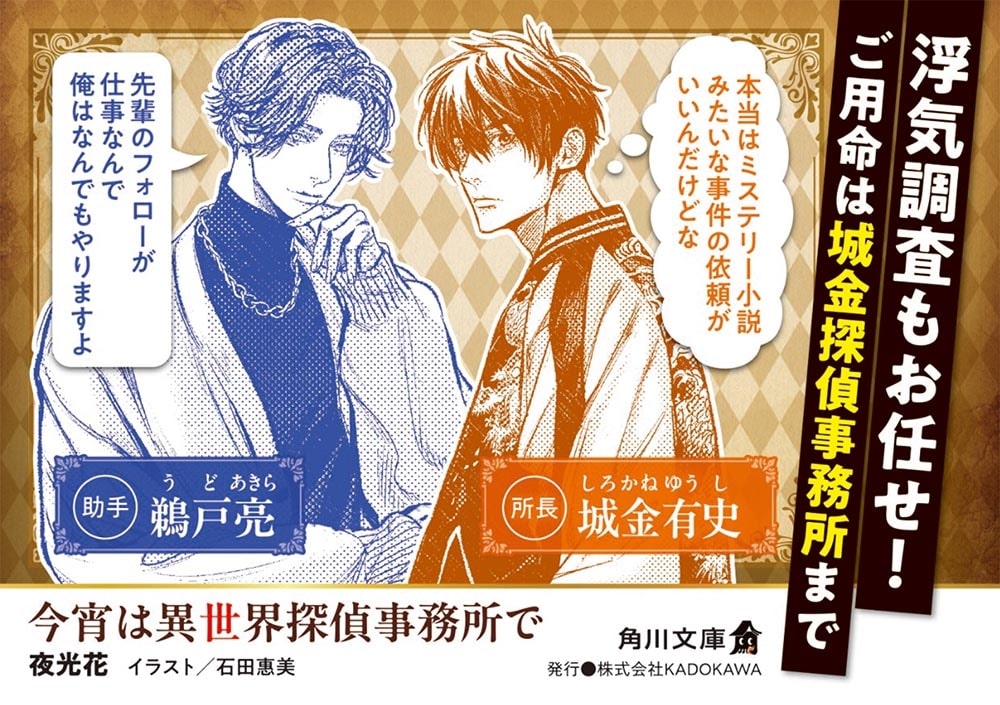 そこで有史と鵜戸は、異世界でも探偵事務所を開くことに。