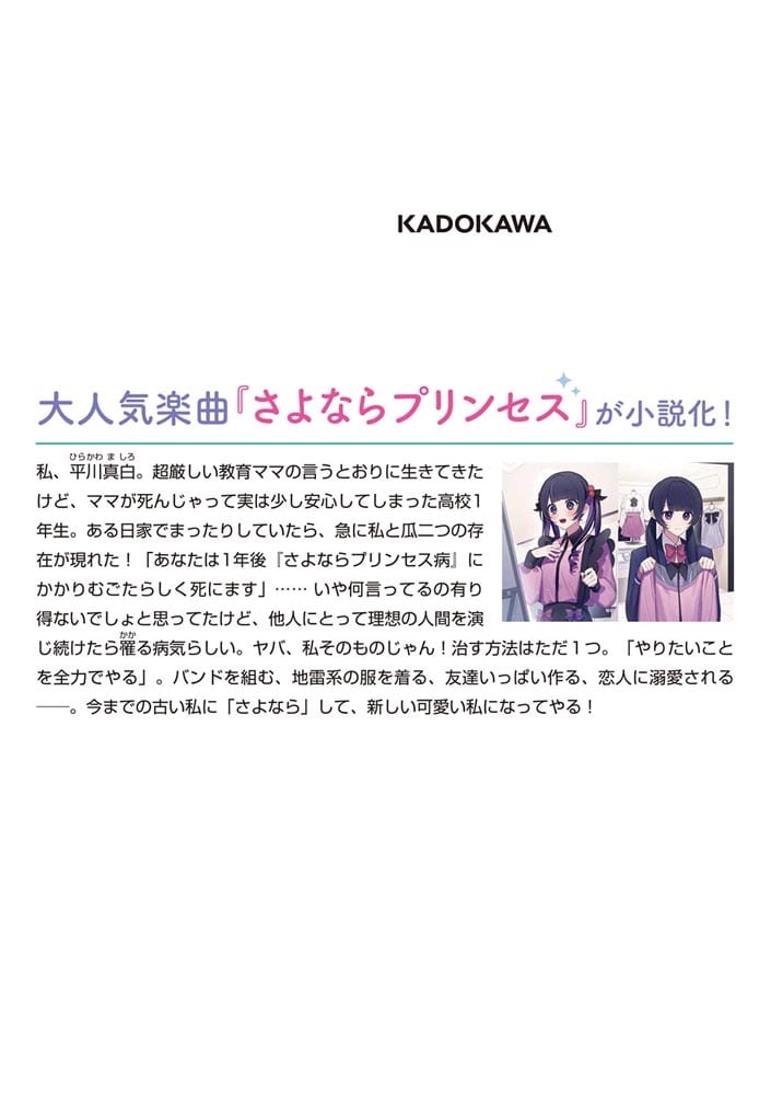 大人気楽曲『さよならプリンセス』が遂に小説化!
