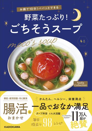 SNSフォロワー11万人超の人気インスタグラマーがお届けする、スープレシピの決定版。一食でもお腹が満足するボリュームで、野菜不足を一発で解消する、おいしいスープレシピを公開します。お鍋で10分で完成する、忙しい毎日に役立つレシピ。仕事で疲れて帰ってもすぐできるかんたんレシピばかりです。ご家族の栄養バランスもばっちりおまかせください。