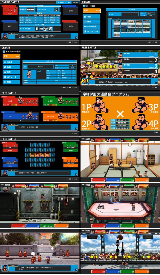 一人でもじっくり遊べるストーリモードを収録!熱血高校の1年生としてはちゃめちゃ大運動会に参加し退屈だった高校生活を過激でエキサイティングに!熱血高校チームのメンバーとして運動会の優勝を目指せ!