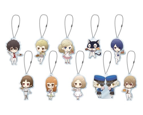 キーチェーンが付いた小ぶりサイズのアクリルキーホルダーなので、ぶら下げた際のアクセントに最適です。白を基調としたデザインの全10種類