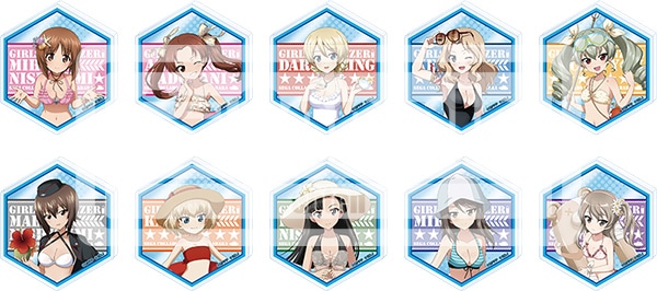 シミュレーションアプリらしく ヘックス型のアクリルバッジに、水着2017'イラストをデザインしました。