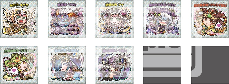 キボウ・ウラミなどゲームを代表するコトダマンたちがスクエアホロ缶バッジになって登場しました。