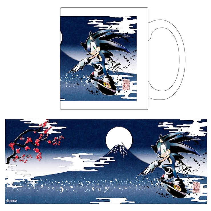 日本の美しい風景である夜の富士山と梅の花に、世界的人気キャラクター、ソニックの疾走感をプラス! 日々のティータイムに新しい彩りを加えるデザインです。