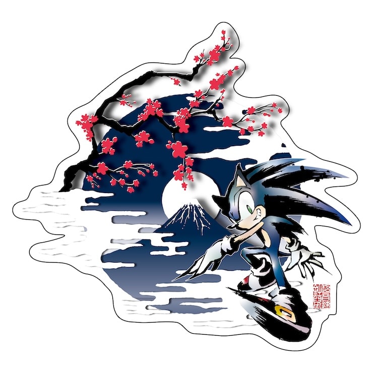 日本の美しい風景である夜の富士山と梅の花に、世界的人気キャラクター、ソニックの疾走感をプラス!