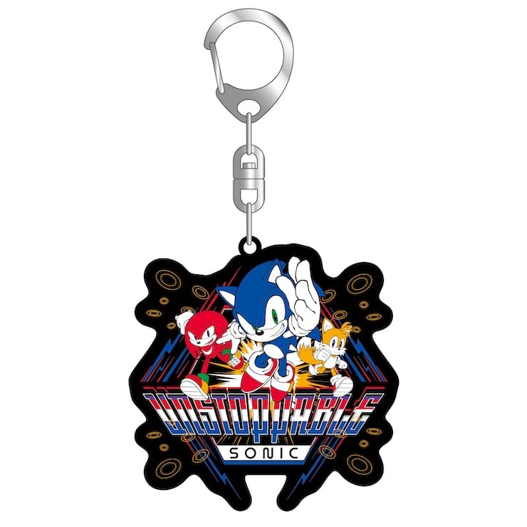 レトロアーケード風のソニックがデザインされたラバーキーホルダーです。