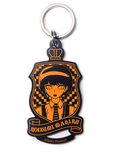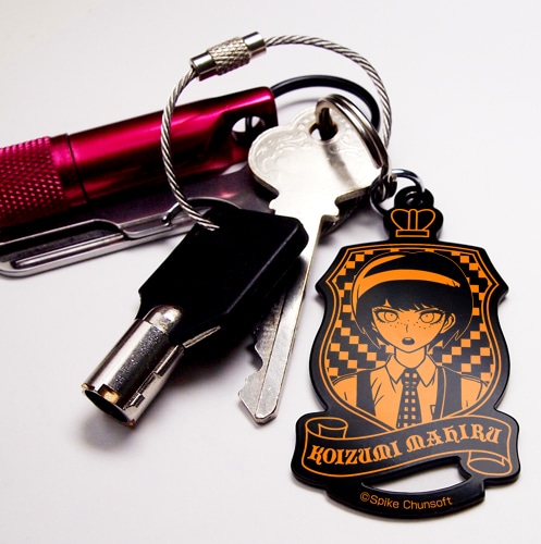 『小泉真昼』がプリントされた、エンブレム形状のステンレス製キーホルダー。