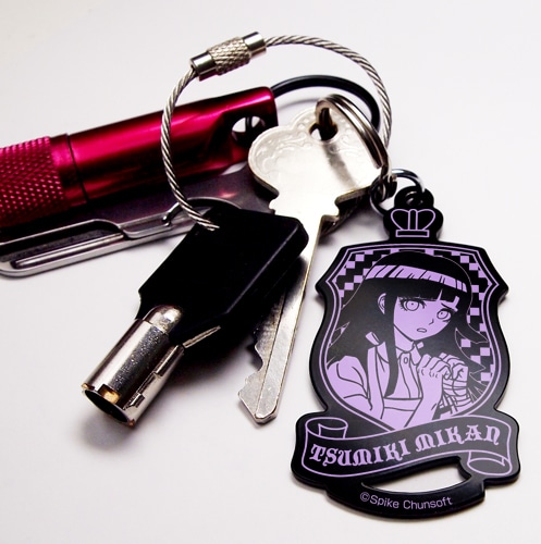 『罪木蜜柑』がプリントされた、エンブレム形状のステンレス製キーホルダー。