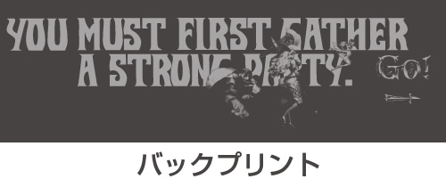 アマゾンの重厚なイラストが魅力的なTシャツ。背面裾には、冒険中のアマゾンをたのもしい仲間と共にプリント!