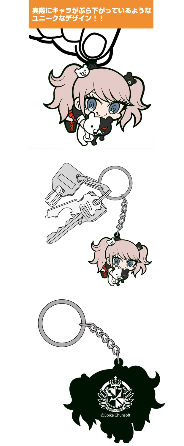 カバン等につけることで、モノクマを抱えた江ノ島さんがつままれてぶらさがっているように見えるユニークなアイテムです!