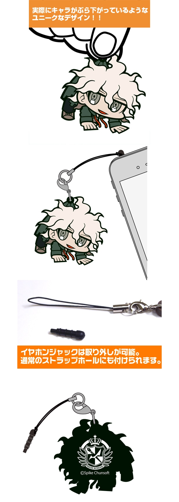 カバン等につけることで、狛枝君がのんびりつままれてぶらさがっているように見えるユニークなアイテムです!携帯電話やデジカメ等に付けるのはもちろん、アクセサリーとしてバッグなどに付けるのもGOOD!