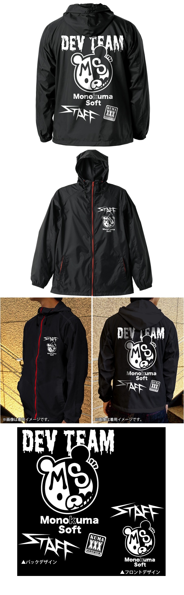 本編に登場する、モノクマが作ったゲームの起動画面に出てきた「モノクマソフト」のスタッフ仕様、フード付きウインドブレーカー!