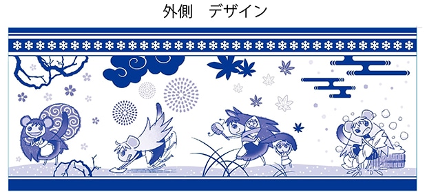 側面に家事をがんばるコーちんが四季の変化とともに描かれた味わい深いデザインになっております。