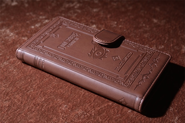 レザー調の落ち着いた素材感のケース生地に、凸凹模様を彫った押し型フレームで強圧するエンボス加工で本作の魅力を再現しています。