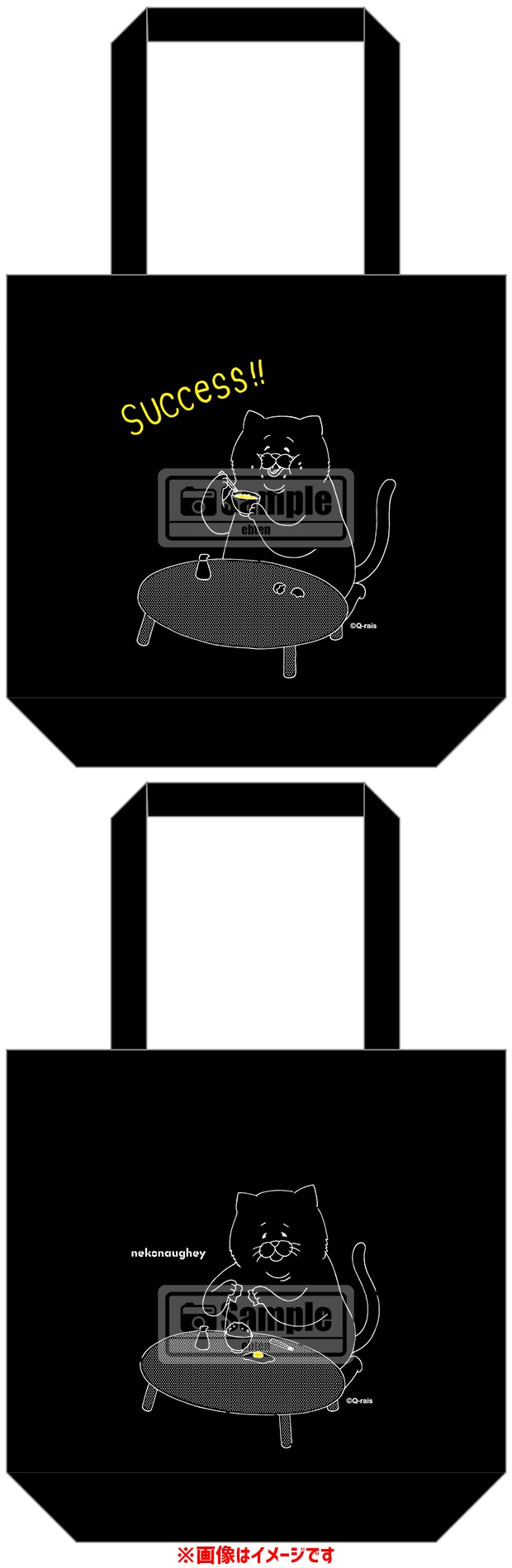 ネコノヒーイラスト(たまごかけごはん)をレイアウト・デザインしたトートバッグです。