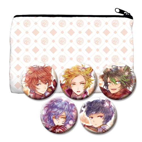 真田軍の家紋をあしらったマルチポーチと、真田軍武将たちの“覚醒”缶バッジ5個のセット。