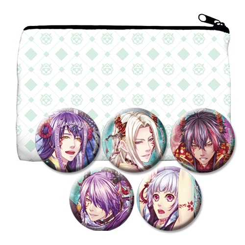 - > 『戦刻ナイトブラッド』ポーチ&缶バッジセット -毛利軍-