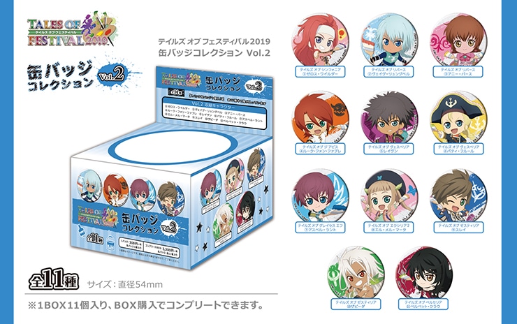 『テイルズ オブ』シリーズファンにはおなじみの、人気イベント『テイルズ オブ フェスティバル 2019』に出演したキャラクターたちのかわいいデフォルメイラストがデザインされたトレーディング缶バッジです。