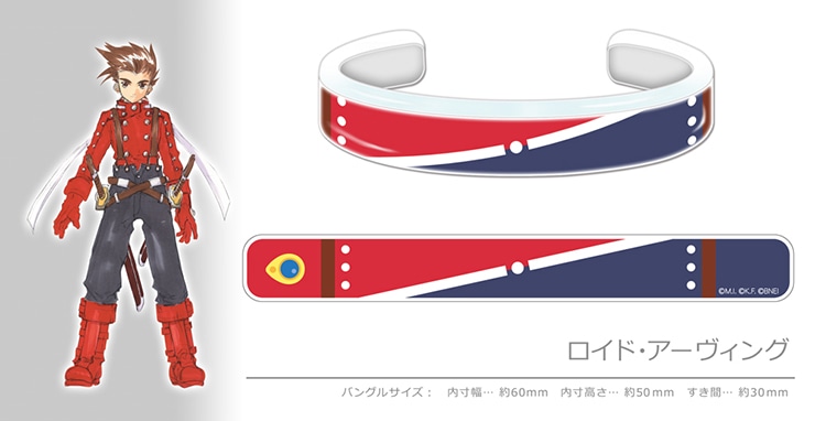 『テイルズ オブ』シリーズファンにはおなじみの、人気イベント『テイルズ オブ フェスティバル 2019』に出演したキャラクターからイメージデザインされたアクリル製のバングルです。自分が推しているキャラクターをアピールできるグッズです。