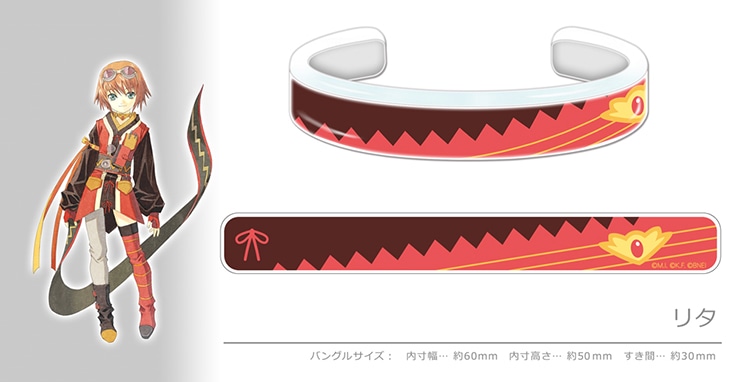 『テイルズ オブ』シリーズファンにはおなじみの、人気イベント『テイルズ オブ フェスティバル 2019』に出演したキャラクターからイメージデザインされたアクリル製のバングルです。自分が推しているキャラクターをアピールできるグッズです。
