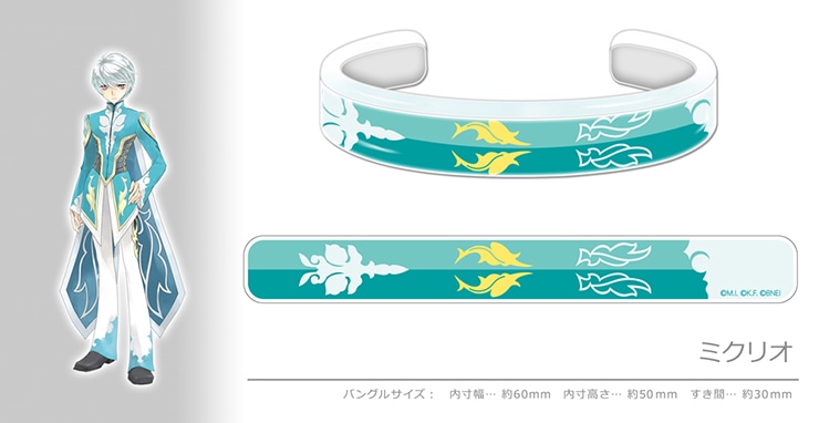『テイルズ オブ』シリーズファンにはおなじみの、人気イベント『テイルズ オブ フェスティバル 2019』に出演したキャラクターからイメージデザインされたアクリル製のバングルです。自分が推しているキャラクターをアピールできるグッズです。