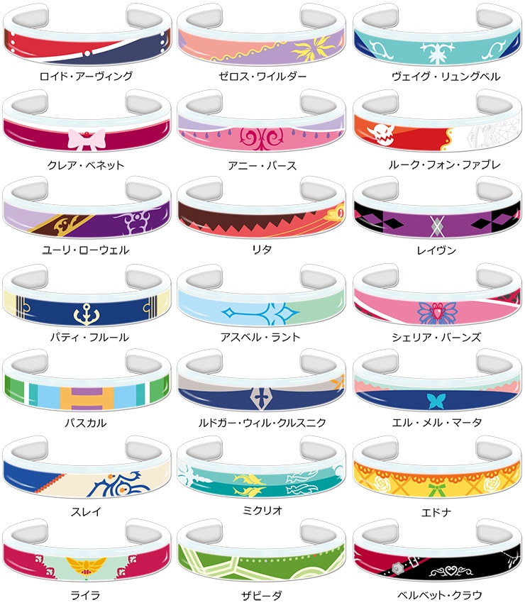 01 ロイド・アーヴィング/02 ゼロス・ワイルダー/03 ヴェイグ・リュングベル/04 クレア・ベネット/05 アニー・バース/06 ルーク・フォン・ファブレ/07 ユーリ・ローウェル/08 リタ/09 レイヴン/10 パティ・フルール/11 アスベル・ラント/12 シェリア・バーンズ/13 パスカル/14 ルドガー・ウィル・クルスニク/15 エル・メル・マータ/16 スレイ/17 ミクリオ/18 エドナ/19 ライラ/20 ザビーダ/21 ベルベット・クラウ